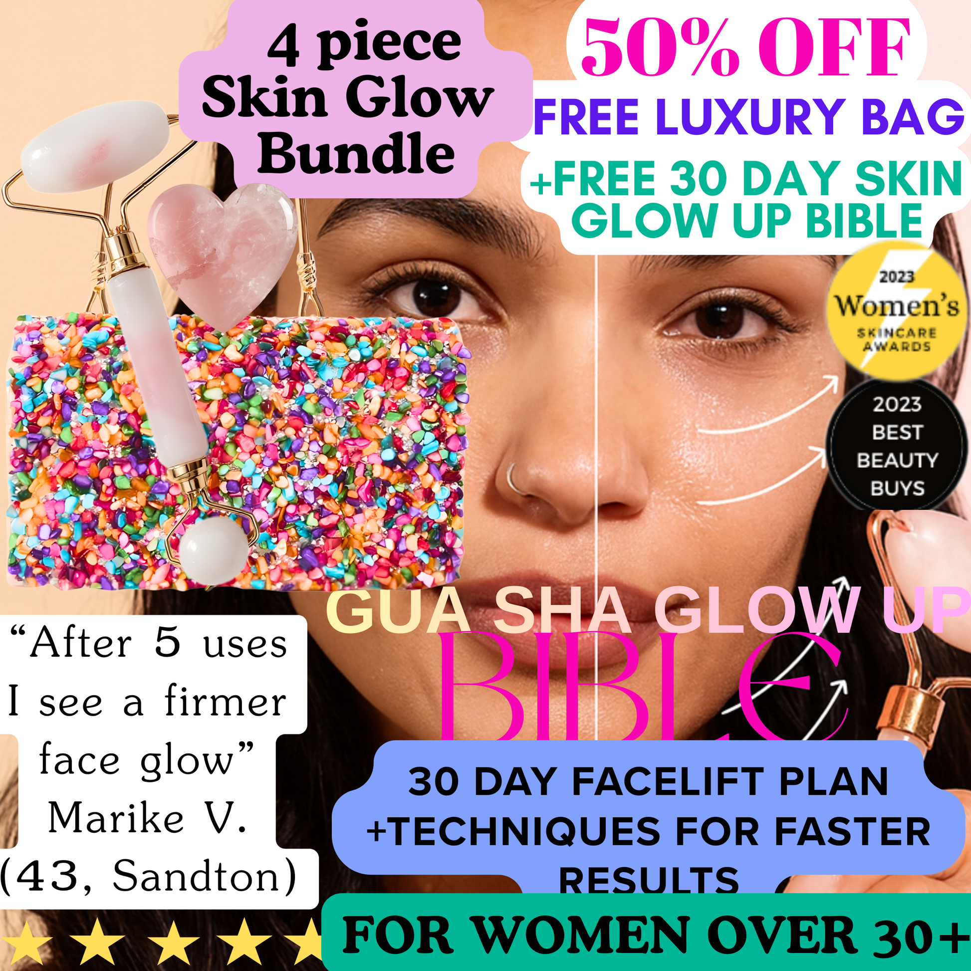 SculptFirm Rose Earth Stone Face Lifting Set + Free Luxury Bag + 30 day Skin Glow Up Bible